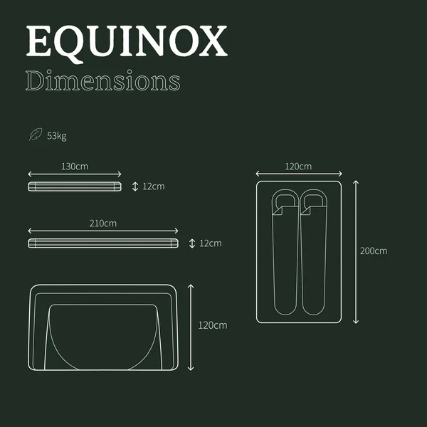 Modèle Equinox de GoOverland : couchage 200×120 cm, toile ripstop 280 g UV 50 +, isolation thermique plus accessoires complets inclus.