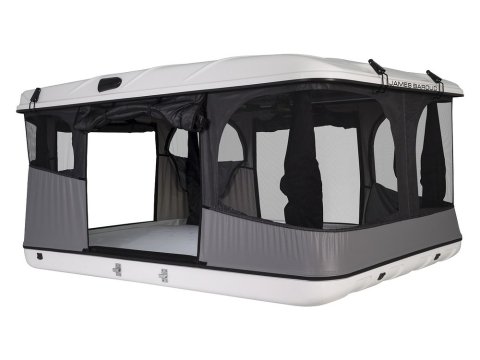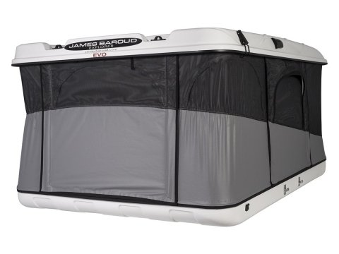 Tente de toit James Baroud Grand Raid M EVO – Coque en fibre de verre, 360° panoramique, porte‑bagages intégrés