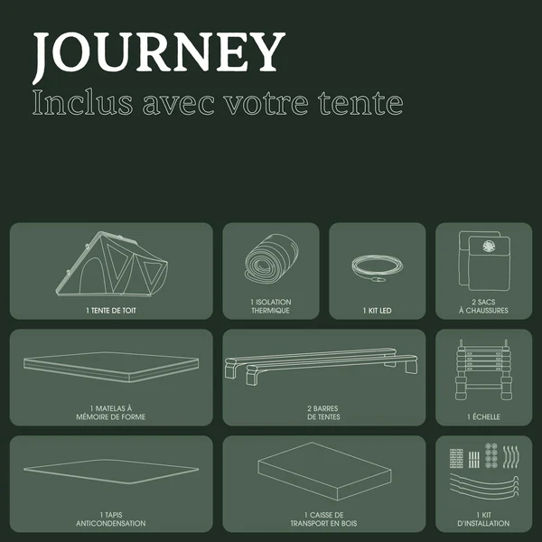 Modèle Journey de GoOverland : structure compacte 12 cm d’épaisseur, toile Ripstop résistante UV SPF50+, échelle télescopique et rangements intérieurs pratiques.